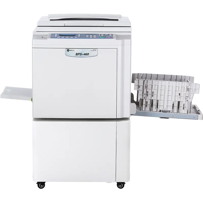 | 标配功能 | 联机打印、省墨模式、铅笔模式、报刊模式、网屏模式、消除中缝、编程印刷、密码模式、保密功能、耗材用尽提示、自动检测原稿、节能、底灰浓度调整、扫描原稿长度调节、版纸长度调整 |